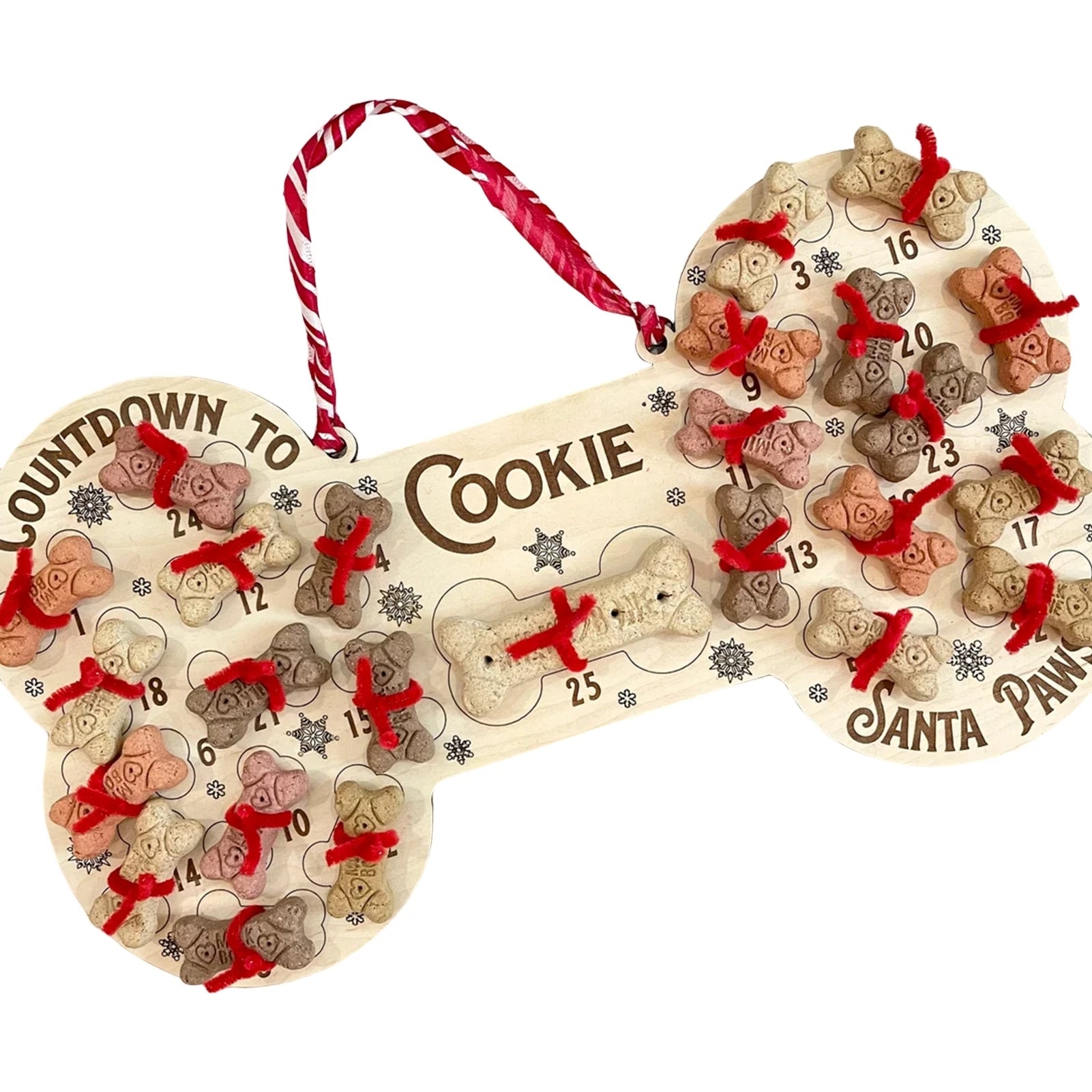 Calendrier de l’Avent Chien 2025 🐾 | Décoration Murale en Bois – Os de Noël à Suspendre