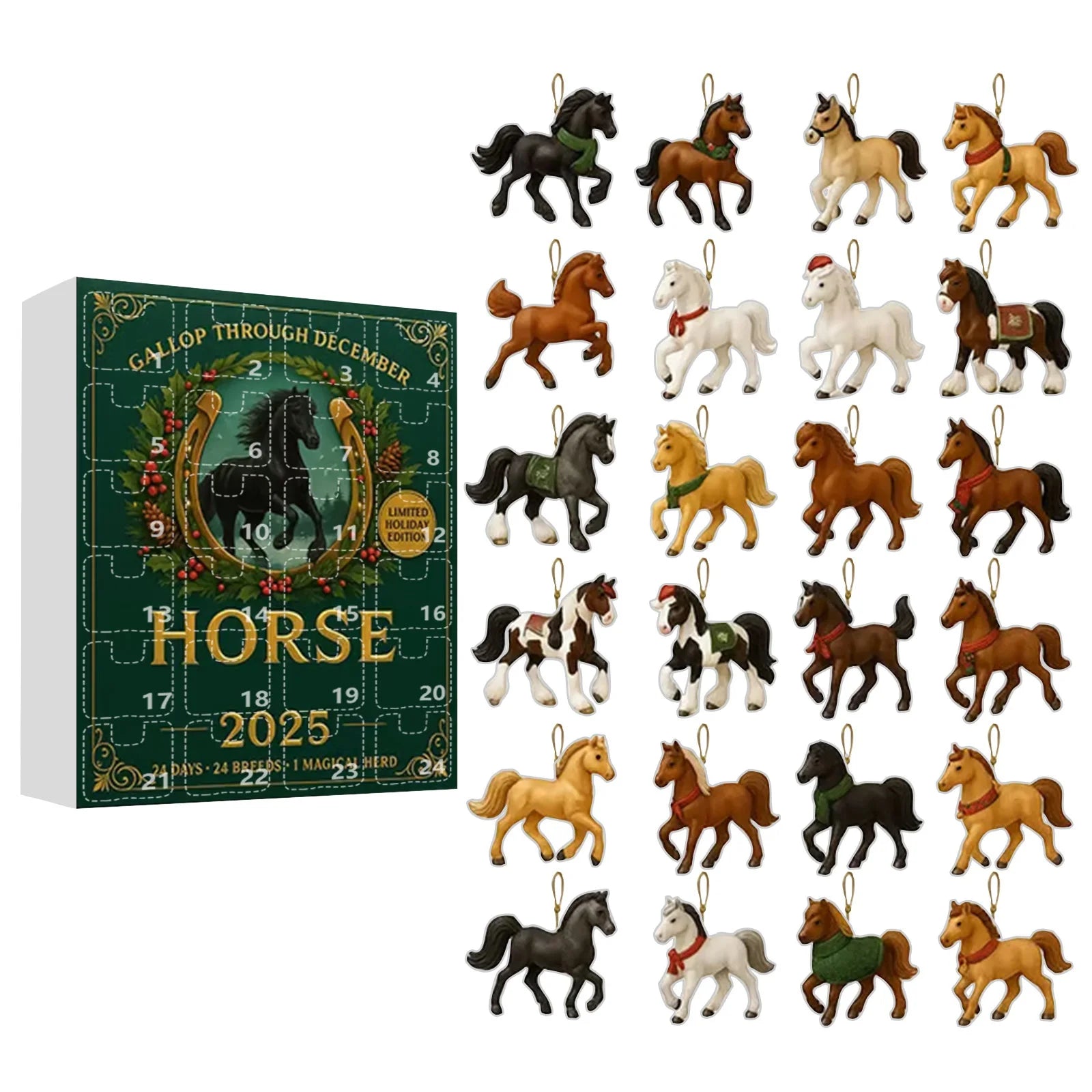 Calendrier de l’Avent Cheval 2025 🐴 | 24 Ornements Acryliques à Suspendre pour Noël